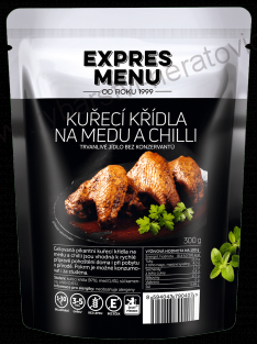 Expres Menu Kuřecí křídla na medu a chilli 300g 3porceSkladem v eshopu135 Kč/ ks121 Kč bez DPH