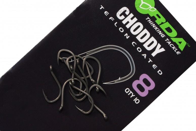 Háčky Choddy nabízí maximálně zvýšenou pevnost, tuhost, odolnost ... zkrátka vyjímečně "silné" háčky s neuvěřitelně ostrým hrotem, který vydrží ostrý vyjímečně dlouhou dobu. Teflonový povrch, který je neleskoucí se a nekorodující a dává háčkům firmy Korda vysokou ostrost a dlouhou životnost.