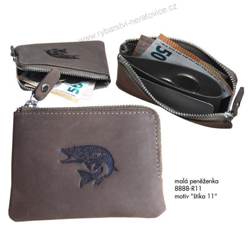 Malá praktická kožená peněženka pro rybáře na bankovky, karty i mince