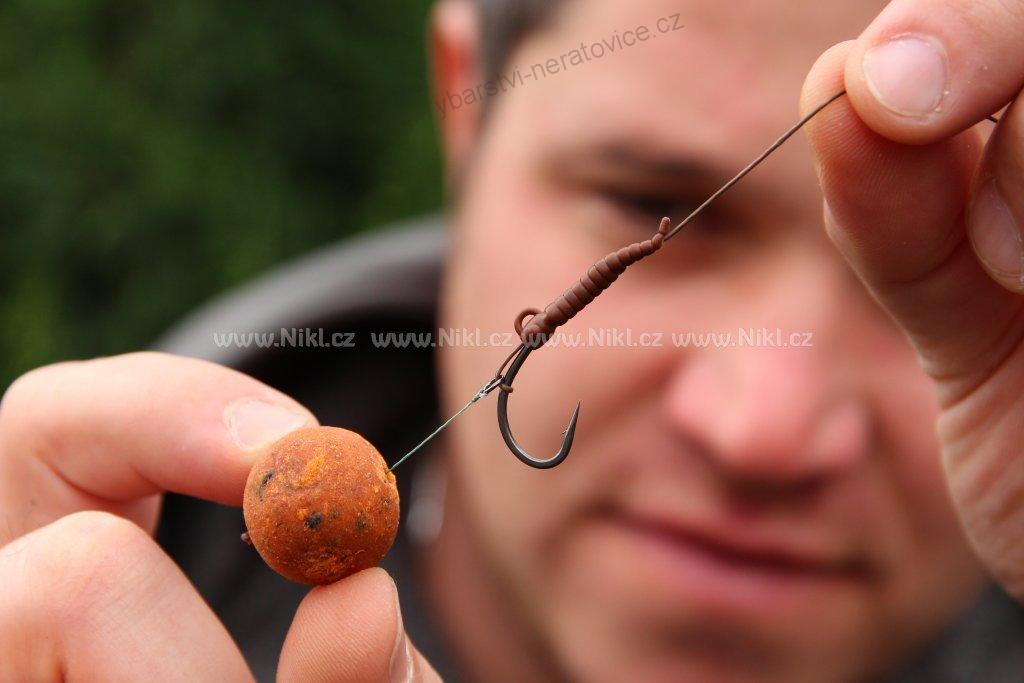 Doporučujeme 3 až 4 cm nad konec Mouthsnaggeru přidat náš olověný broček Camo Shot (ideálně 0,9 g). Nebo použít trochu plastického olova Tungsten Putty. Zátěžový broček pomáhá se správným přetáčením háčku do spodního pysku ryby.