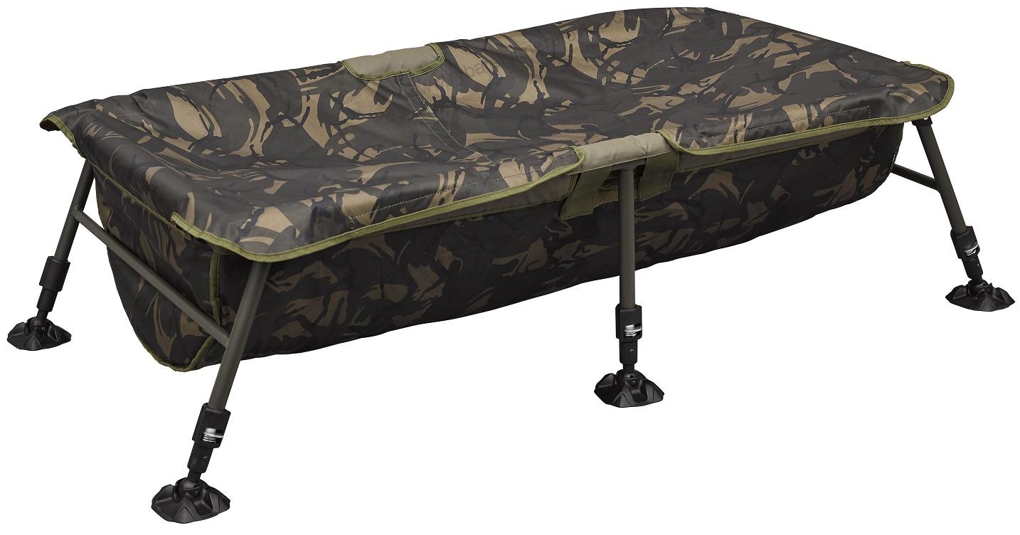 Skládací podložka vaničkového typu pro maximální ochranu úlovku na břehu. 6 plně nastavitelných teleskopických noh se širokými patkami proti zapadání. Odlehčená a pevná skládací rámová konstrukce. Měkká pogumovaná tkanina pro ochranu ryb i snadné čištění. Kryt na suchý zip jako ochrana proti vyskočení kapra. Po stranách odtokové kanálky na přebytečnou vodu. Kamufláž DPM. Transportní obal s rukojetí a popruhem přes rameno. Rozměry dxšxvxh: 110x60x33-45x22 cm. Transportní rozměry: 63x55x20 cm. Váha 4,5 kg.