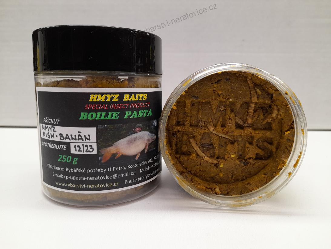 Boilie pasta s vysokým obsahem hmyzu - v příchuti - Hmyz/Fish/Banán je super produkt, který výrazně zvýší atraktivitu vaší nástrahy. Díky perfektní rozpustnosti a uvolňování atraktorů učiní Vaši nástrahu pro kapry nepřehlédnutelnou.