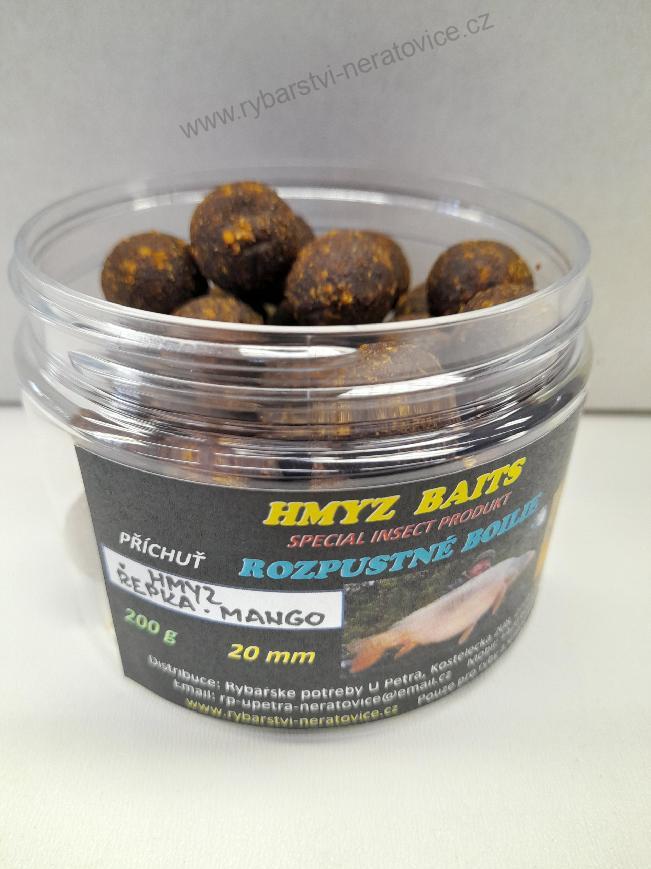 Boilie rozpustné - Hmyz/Řepka/Mango 20mm - 200gSkladem v eshopu149 Kč/ ks133 Kč bez DPH