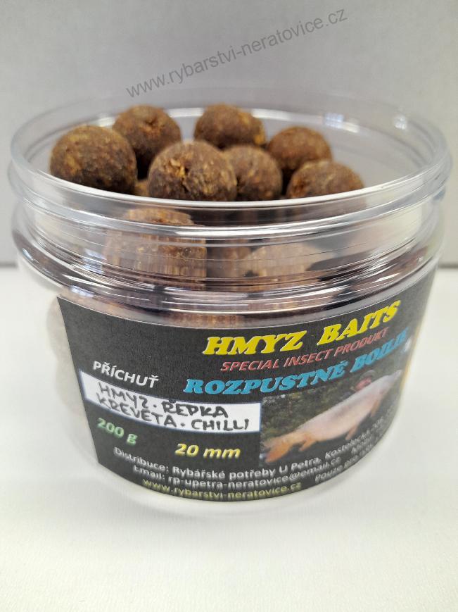 Boilie rozpustné - Hmyz/Řepka/Kreveta/Chilli 20mm - 200gSkladem v eshopu149 Kč/ ks133 Kč bez DPH