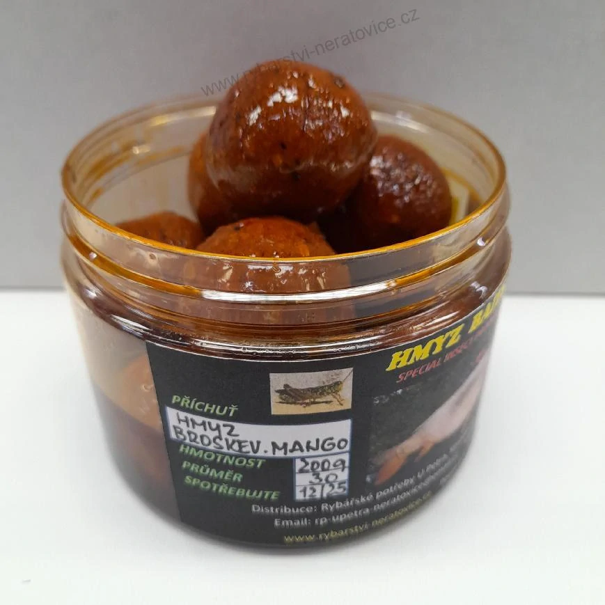 - Boilie v dipu - Hmyz/Broskev/Mango - 200g - 30mm