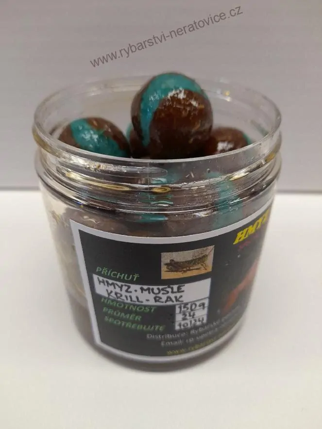Díky velkému zájmu rybářů Vám přinášíme nový produkt, a to Boilies v dipu na bázi Hmyzu, obohacené o čisté maso z Mušlí, Krevet, Krillu, Raka, Tubifex (nítěnky ).