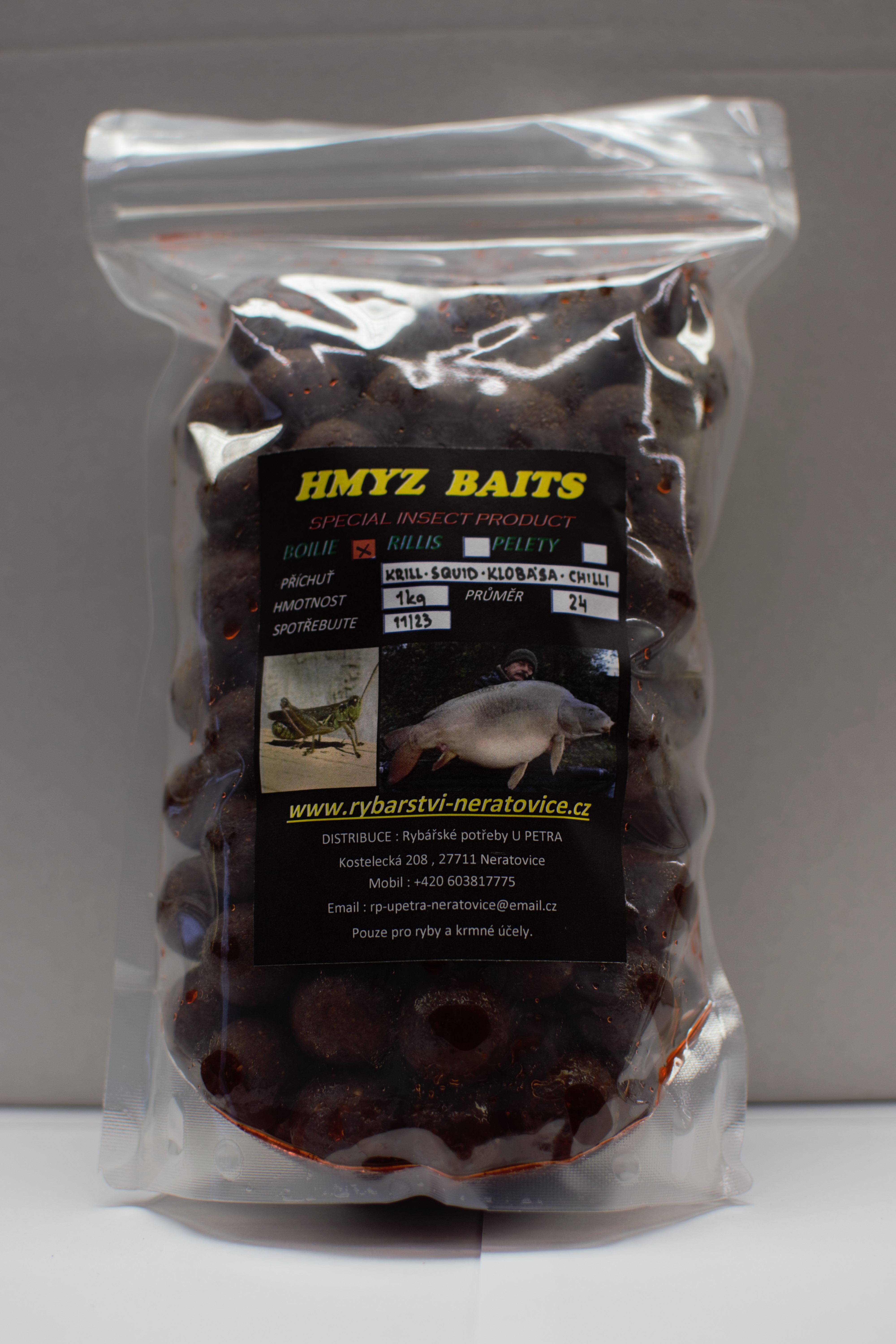 - Boilie v dipu - Krill/Squid/Klobása/Chilli - 1kg - 24mm