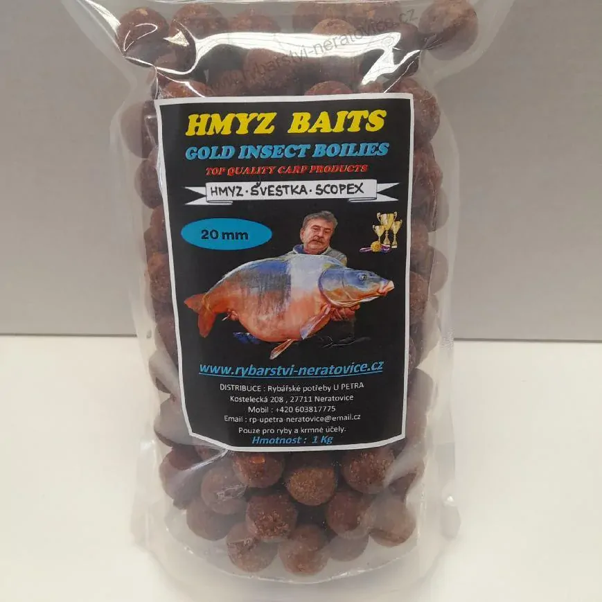 Gold Insect boilies - Hmyz/Švestka/Scopex - 1kg - 20mmSkladem v eshopu432 Kč/ ks386 Kč bez DPH