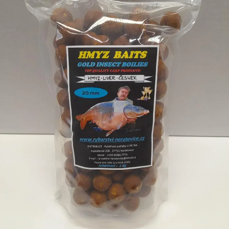 - Gold Insect boilies - Hmyz/Liver - Játra/Česnek - 1kg - 24mm