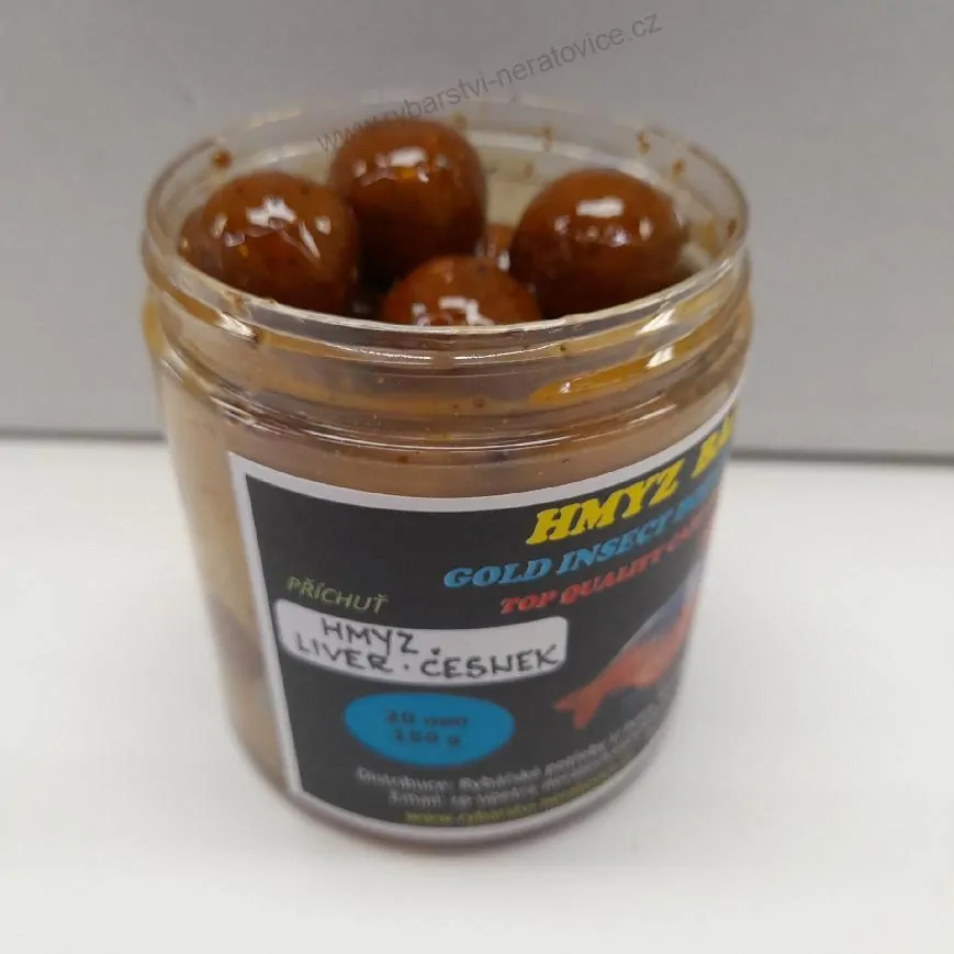 - Gold Insect boilies v dipu - Hmyz/Liver - Játra/Česnek - 150g - 24mm