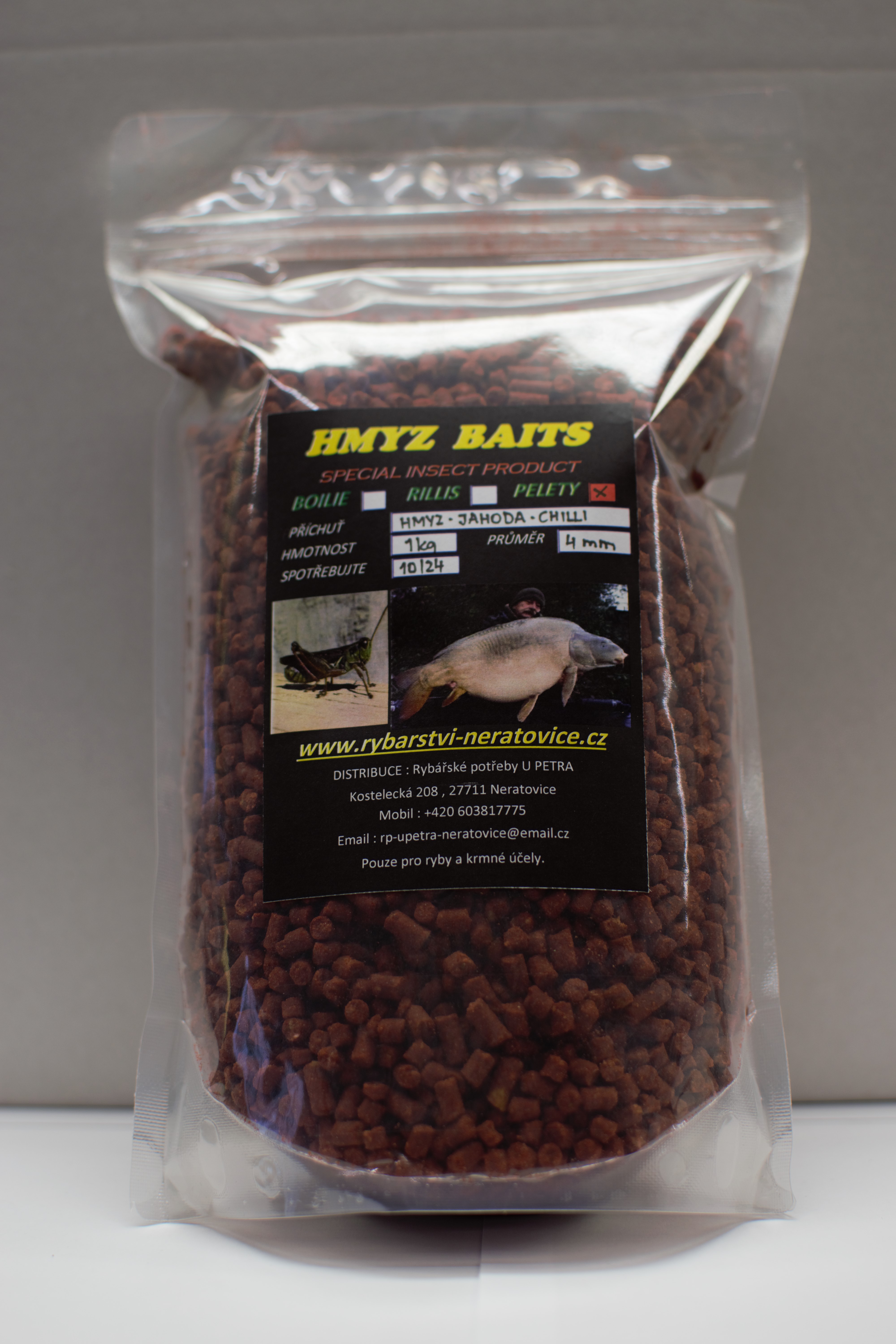Pelety krmné - Hmyz/Jahoda/Chilli - 4mm - 1kg