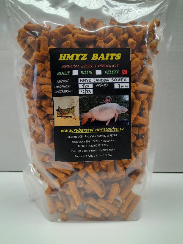 Pelety krmné - Hmyz/Jahoda/Scopex - 7mm - 1kgSkladem v eshopu165 Kč/ ks147 Kč bez DPH