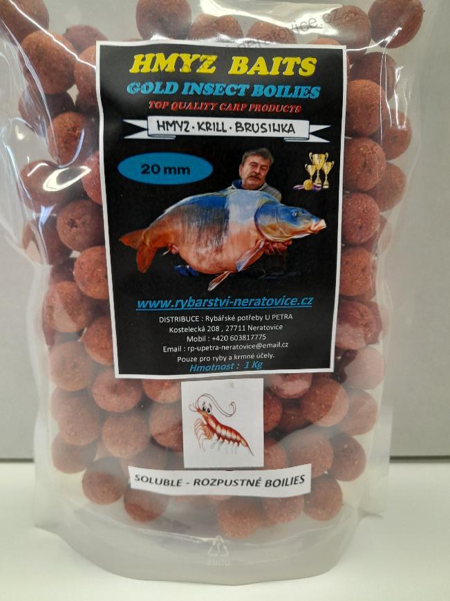 Soluble - rozpustné boilie - Hmyz/Krill/Brusinka - 20mm - 1kg