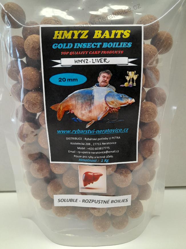 - Soluble - rozpustné boilie - Hmyz/Liver - 20mm - 1kg