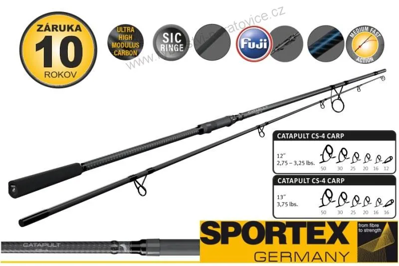 Kaprařské pruty SPORTEX Catapult CS-4 Carp jsou speciálně vyrobené pro daleké a přesné hody. Osazené nejkvalitnějšími KW/KL SIC očky a FUJI DPS sedlem navijáku.