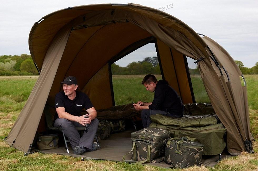 Velký bivak pro dva rybáře a dvě lehátka s velkým kšiltem proti dešti a slunci. Prostor na velké množství vybavení. Díky jeho výšce se v něm pohodlně postavíte.